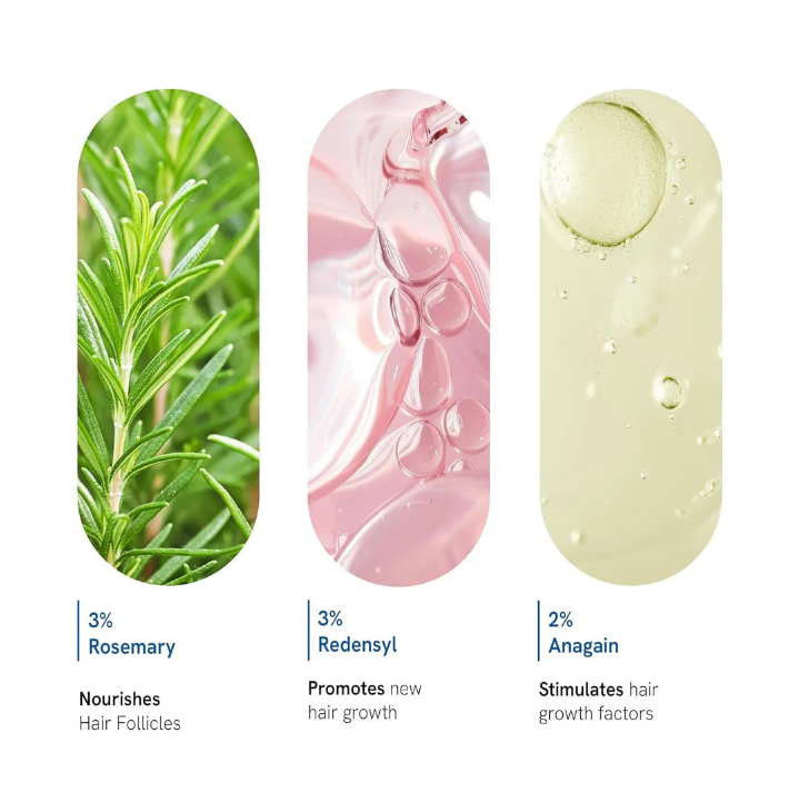 Triple-Action Hair Growth Serum Roll On – 3 % Rosmarin, 3 % Redensyl och 2 % Anagain reaktiverar vilande hårfolliclar, ökar syredelivery och blockerar aktivt DHT för starkare rötter och tjockare hårstrån.Mess-Free Precision Roller – Målstyrda tunnare områden bättre än en spray eller olja; denna icke-fettha roll-on för hår absorberar snabbt, är lätt att ta med och lämnar inget restprodukt.Faster, Longer Growth Cycle – Kliniska aktiva ämnen förlänger anagenfasen, minskar hårdnande av folliclar och dämpar hårfall redan inom 8–12 veckor – ett enkelt tillskott till dina hårförlustbehandlingar för både kvinnor och män.Clean-Lab Safety – Varaktig skydd utan hårda kemikalier: Utan parabener, utan ftalater, utan sulfater, cruelty-free och laboratorietestat – ett idealt alternativ till minoxidilskum eller andra skalpserum.Universal & Easy to Use – Fungerar för alla hårtyper som ett fristående skalpserum, ett substitut för hårväxtoljspray eller tillsammans med hårvitaminer/tillskott; massera helt enkelt rollern i 2 minuter två gånger om dagen.