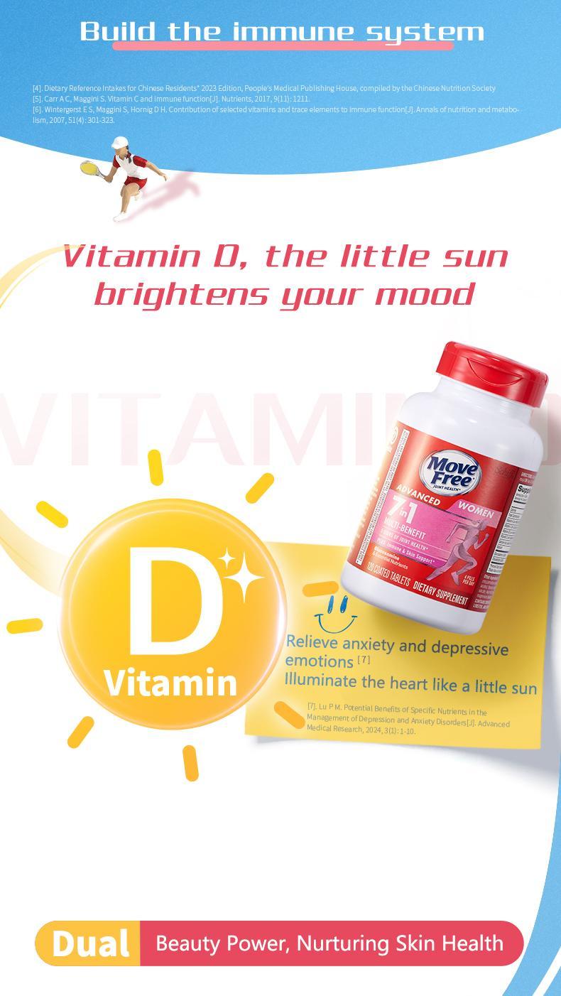 Move Free Advanced Women's Joint Health Supplement✨ Key Benefits: This supplement focuses on joint health, offering a comprehensive 7-in-1 formula. It includes glucosamine, chondroitin, calcium, and vitamins essential for women's joint care. The complex supports overall joint health, making it a vital addition to any health regimen.·Quantity: 120 coated tablets·Composition: 7 key ingredients in one packageEach tablet is formulated to provide essential nutrients for joint health. The coating ensures easy consumption and absorption of beneficial components. Perfect for those seeking a convenient way to support their joint health needs.Suitable for: Women looking to enhance their joint health naturally. Follow the recommended dosage for best results. This supplement complements a balanced diet and lifestyle choices for optimal joint health. No additional features or claims are made beyond the provided information.